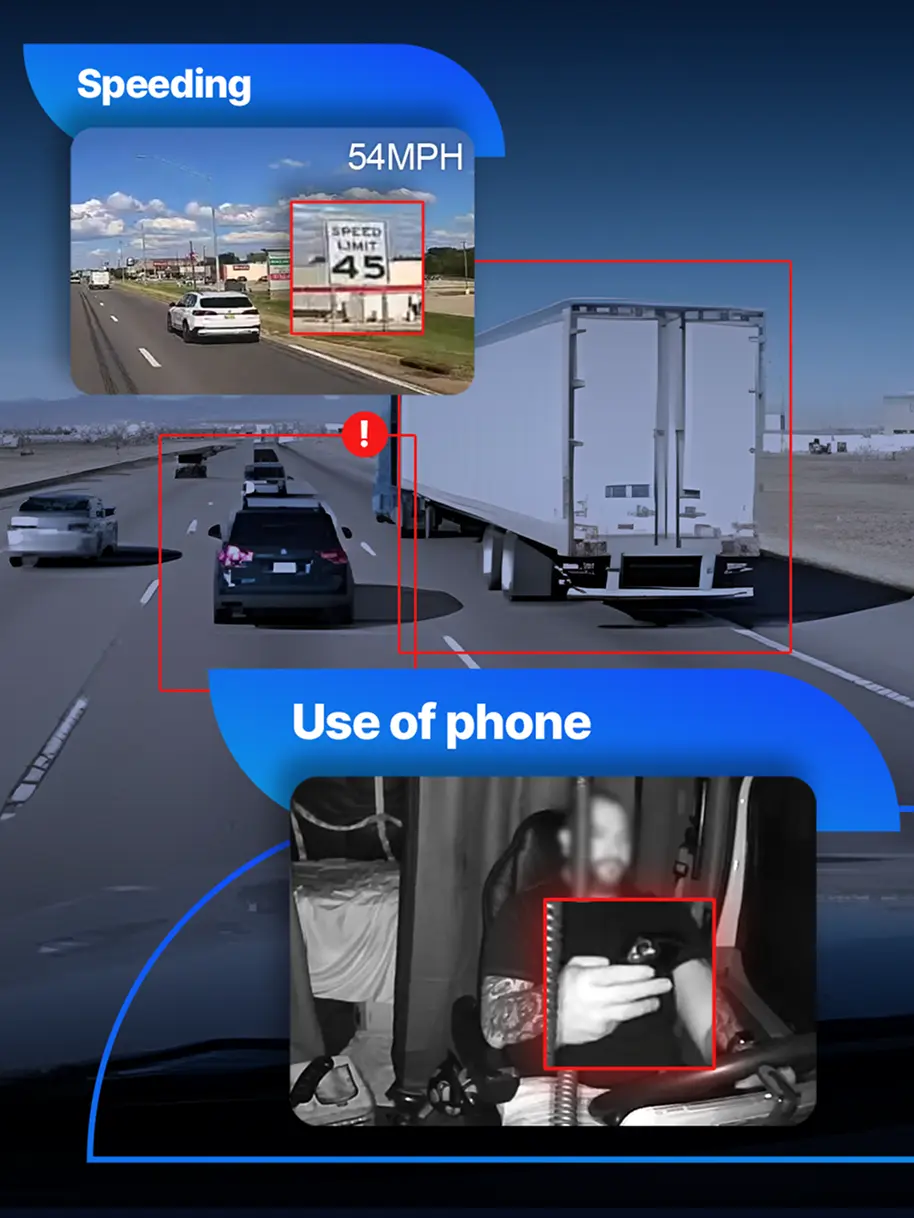 Our advanced cameras detect risky behaviors like tailgating, fatigue, and distraction in real time, sending instant alerts to both drivers and fleet managers.