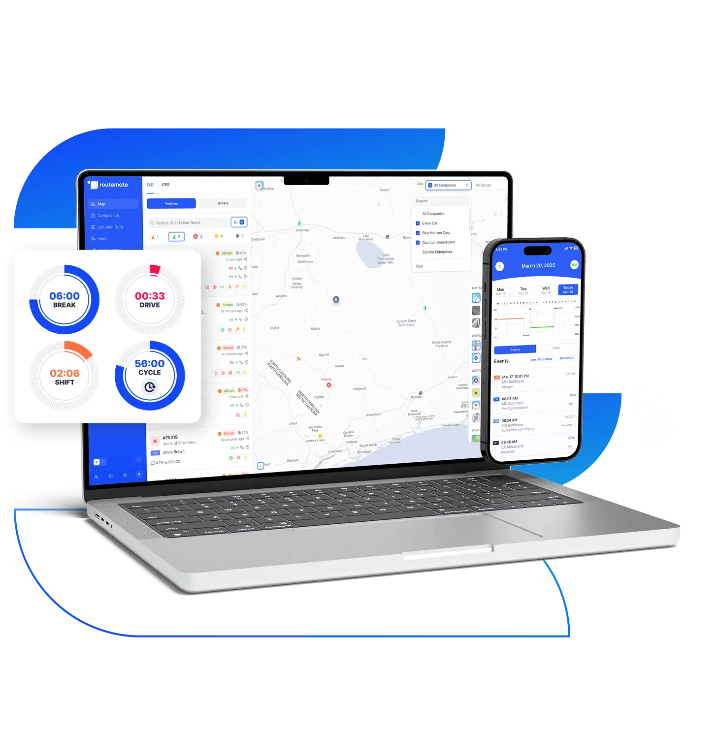 RouteMate is no longer just about ELD compliance. We now offer a range of products tailored to support fleets of all sizes. Whether you need to improve safety, optimize routes, maintain your fleet, or stay compliant, we have the tools to help you. Here’s what we offer: