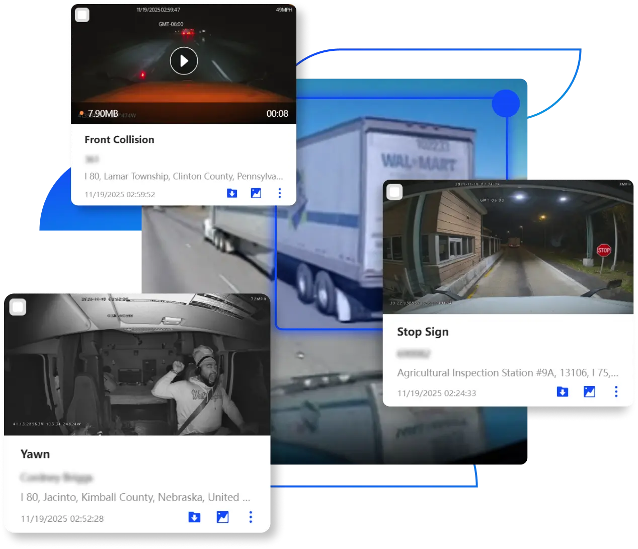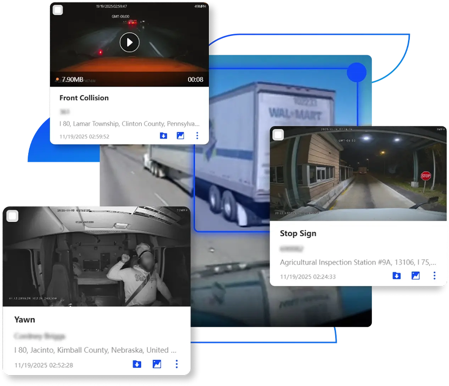 Our industry-leading AI continuously analyzes driver behavior in real time, detecting risks like tailgating, speeding, and fatigue, and alerts you instantly for quick action.