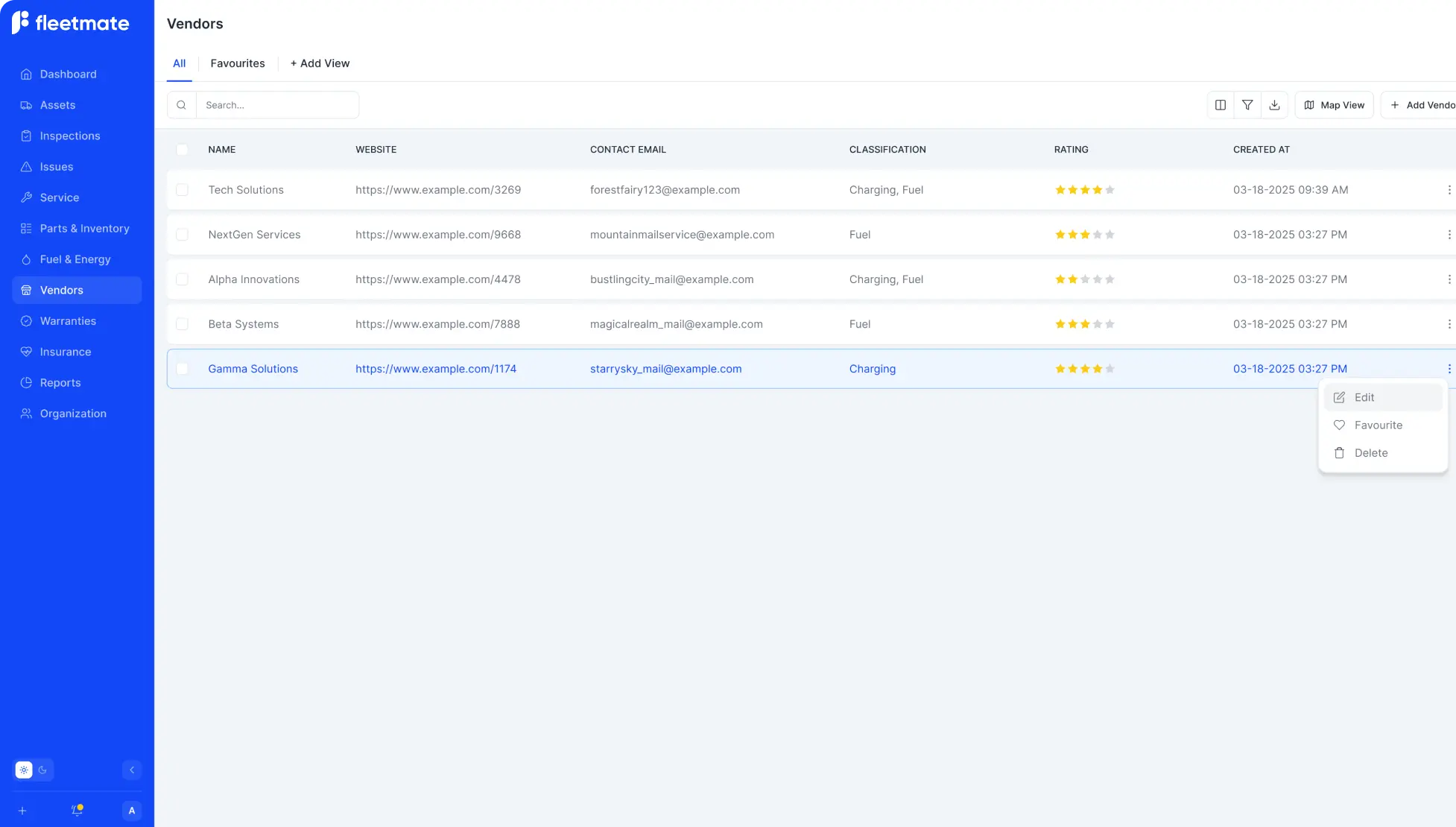 Keep all your vendors in one place, know who to trust for what, and contact them in seconds. From parts suppliers to service shops, you’ll always know who does what and where they’re located.