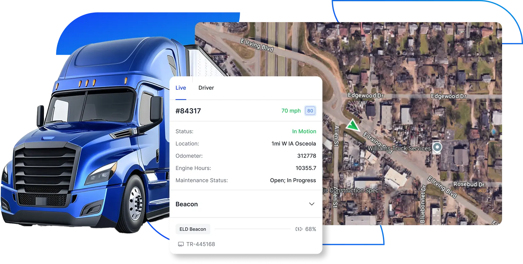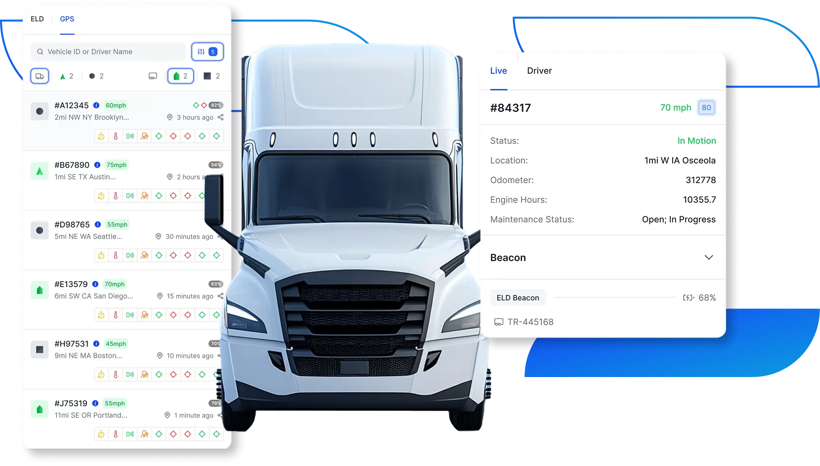 See your entire fleet move in real time, complete with driver names, vehicle IDs, and current statuses.