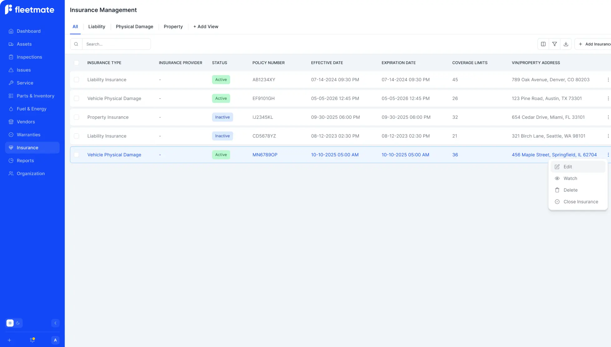 FleetMate makes it simple to assign insurance files to vehicles and never miss a renewal.